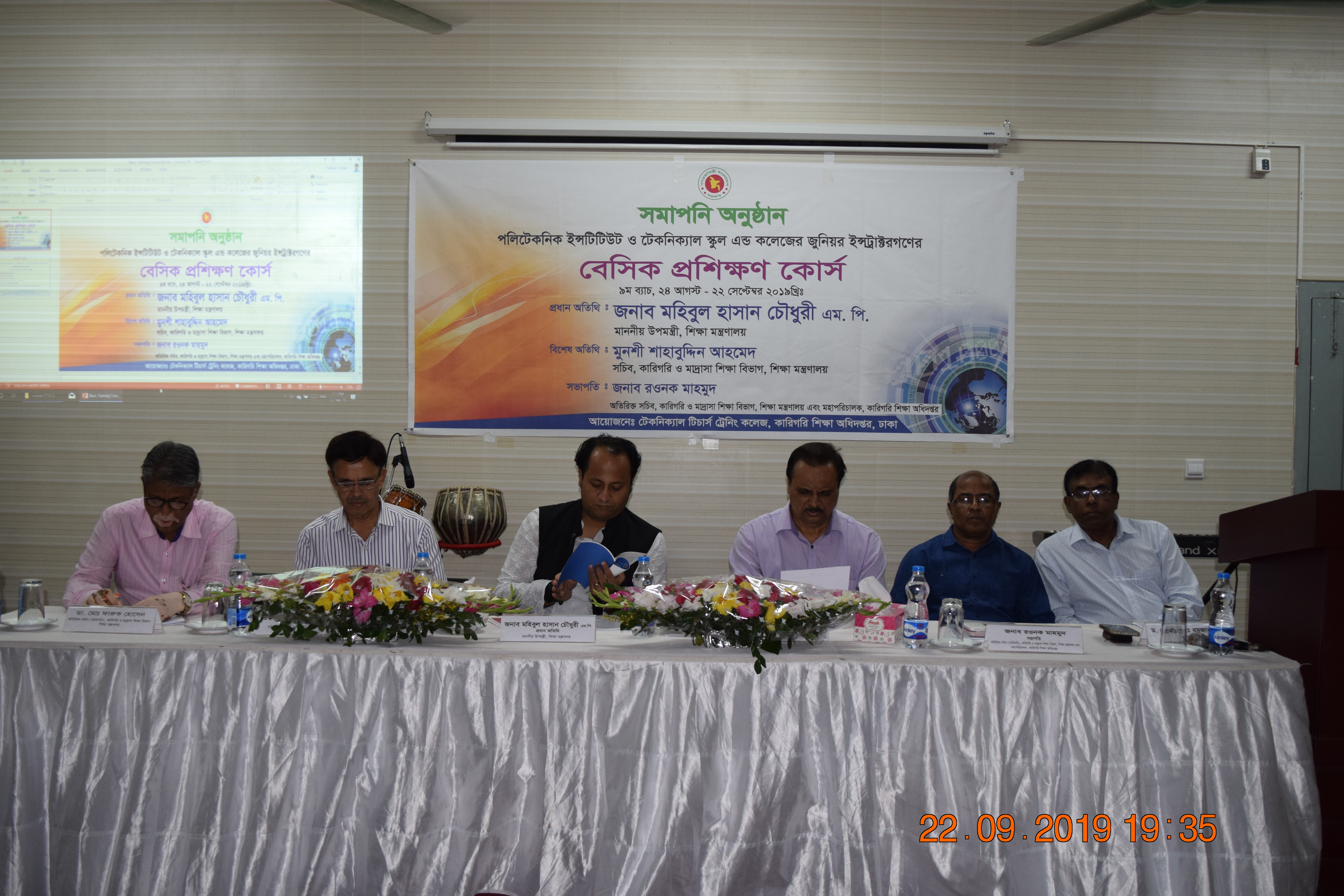 পলিটেকনিক ইন্সটিটিউট ও টেকনিক্যাল স্কুল এ্যান্ড কলেজের জুনিয়র ইন্সট্রাক্টরগণের বেসিক প্রশিক্ষণ কোর্সের সমাপনি অনুষ্ঠান